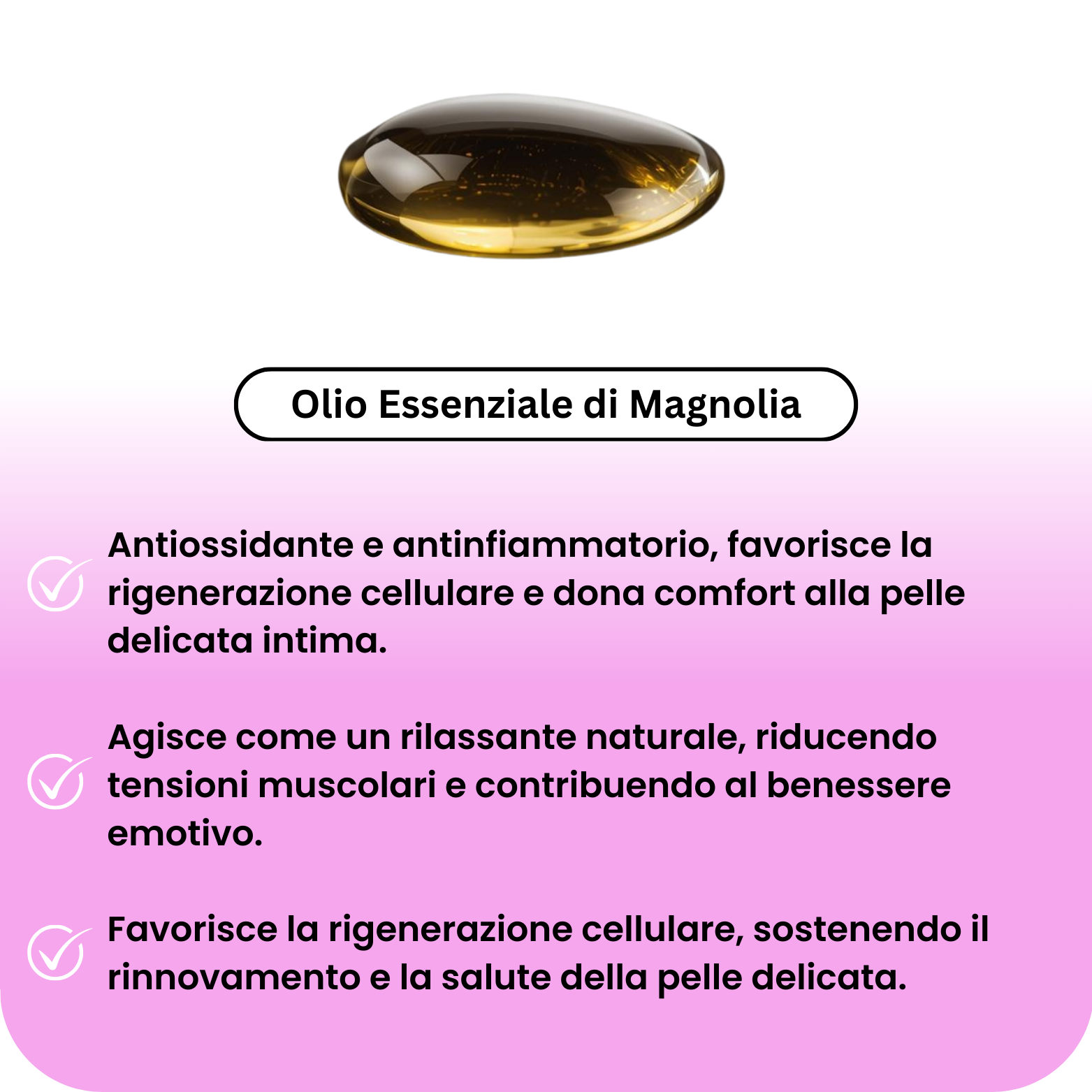 - Non serve il bagnoschiuma, l'olio crea naturalmente una morbida carezza sulla pelle;